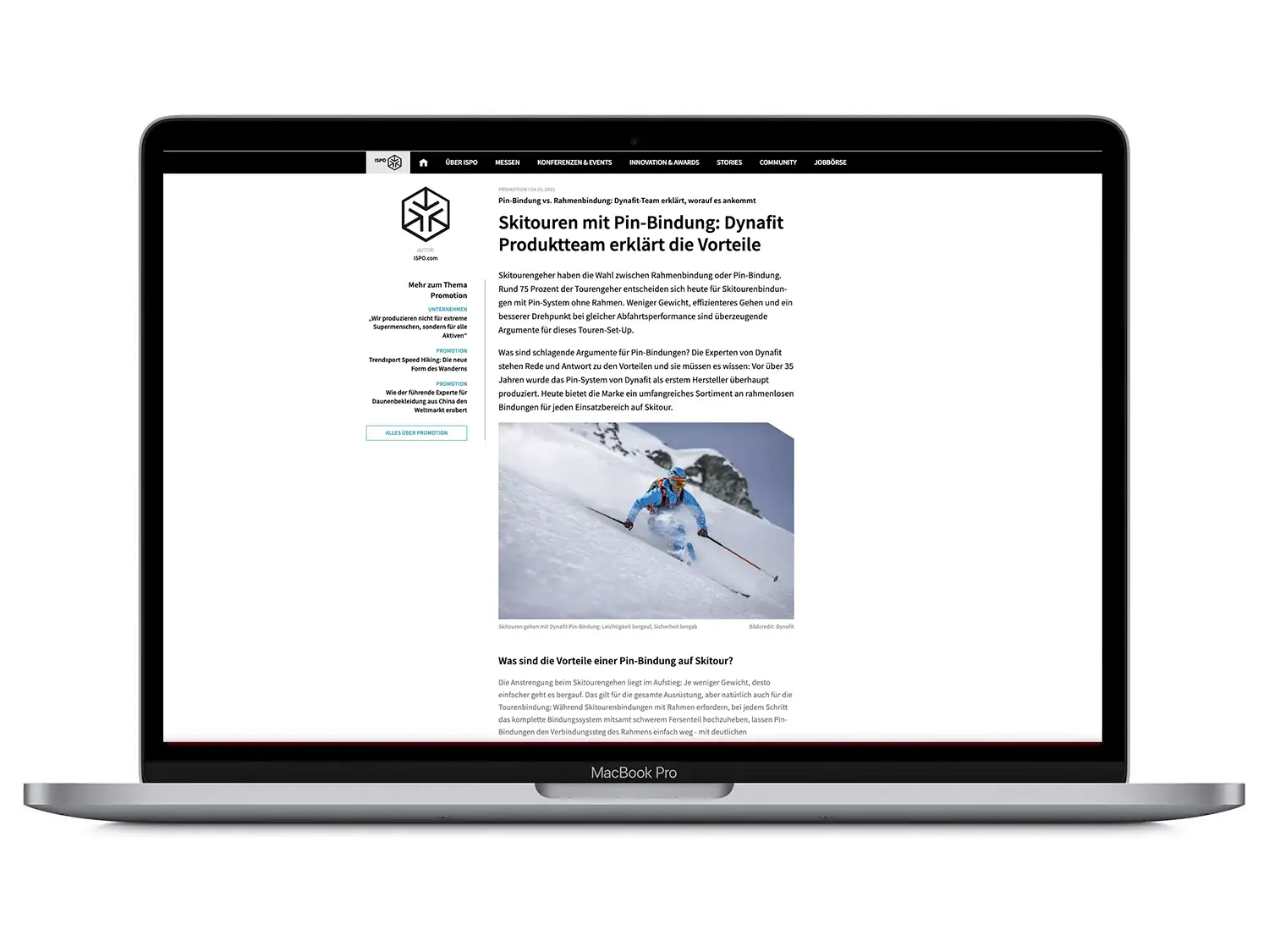 The goal of the campaign was to communicate the benefits of Dynafit pin bindings to an educated community at eye level. This is how Dynafit achieved this with ISPO.com: