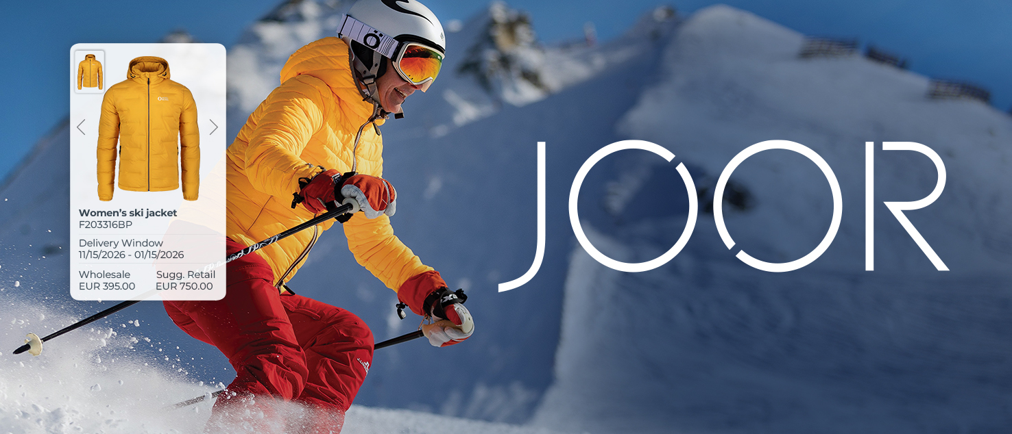 As sport and fashion continue to converge, JOOR operates naturally at the intersection of both worlds. The platform’s strongest momentum comes from active lifestyle, performance leisure, and fashion-forward sportswear—segments that blend technical performance with contemporary design. Brands such as Colmar, Fabletics, and Descente reflect this crossover and resonate strongly across JOOR’s global retail network.